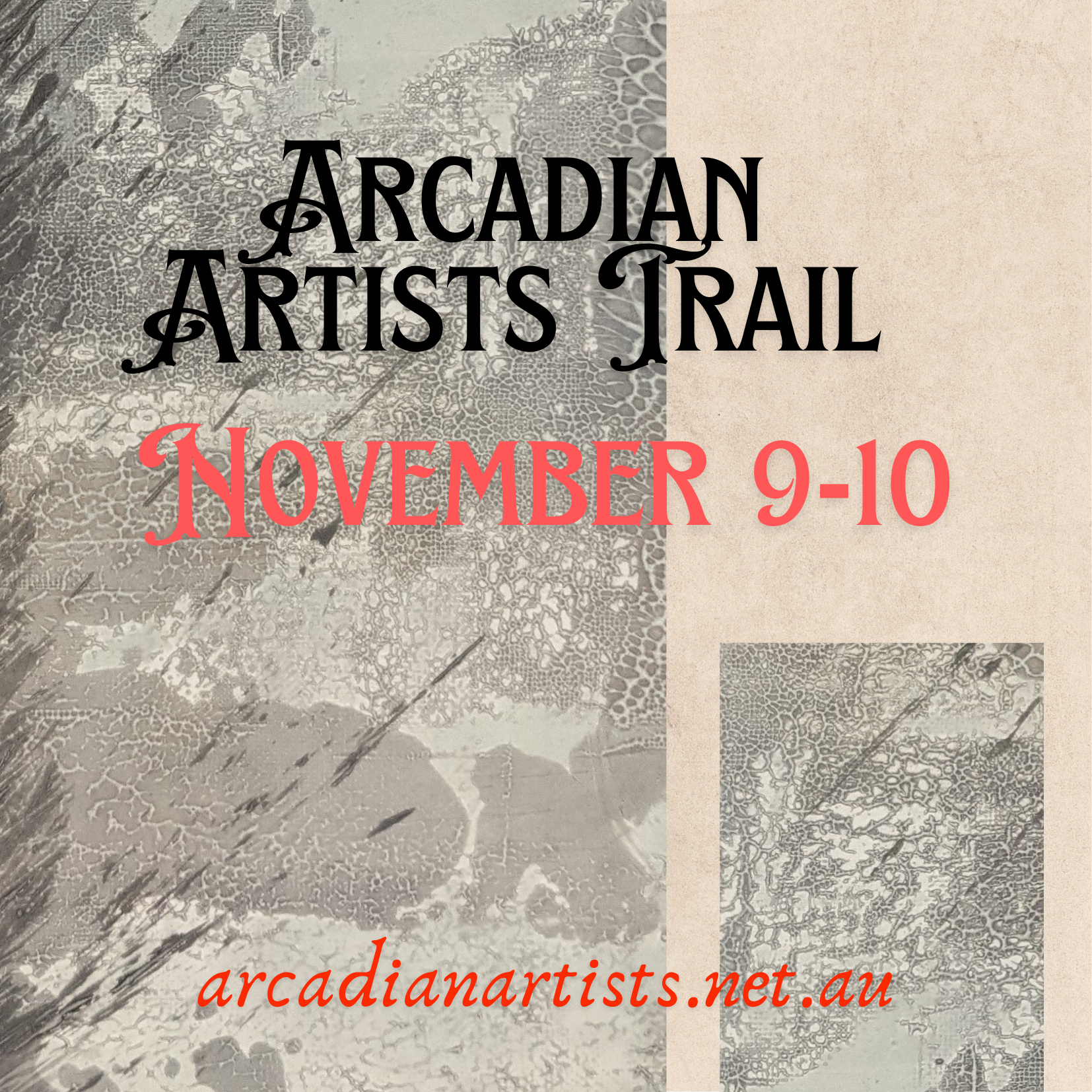 09 & 10 November 2024. 9-00 - 5.00 on both Saturday and Sunday Arcadian Artists Trail - website: arcadianartists.net au